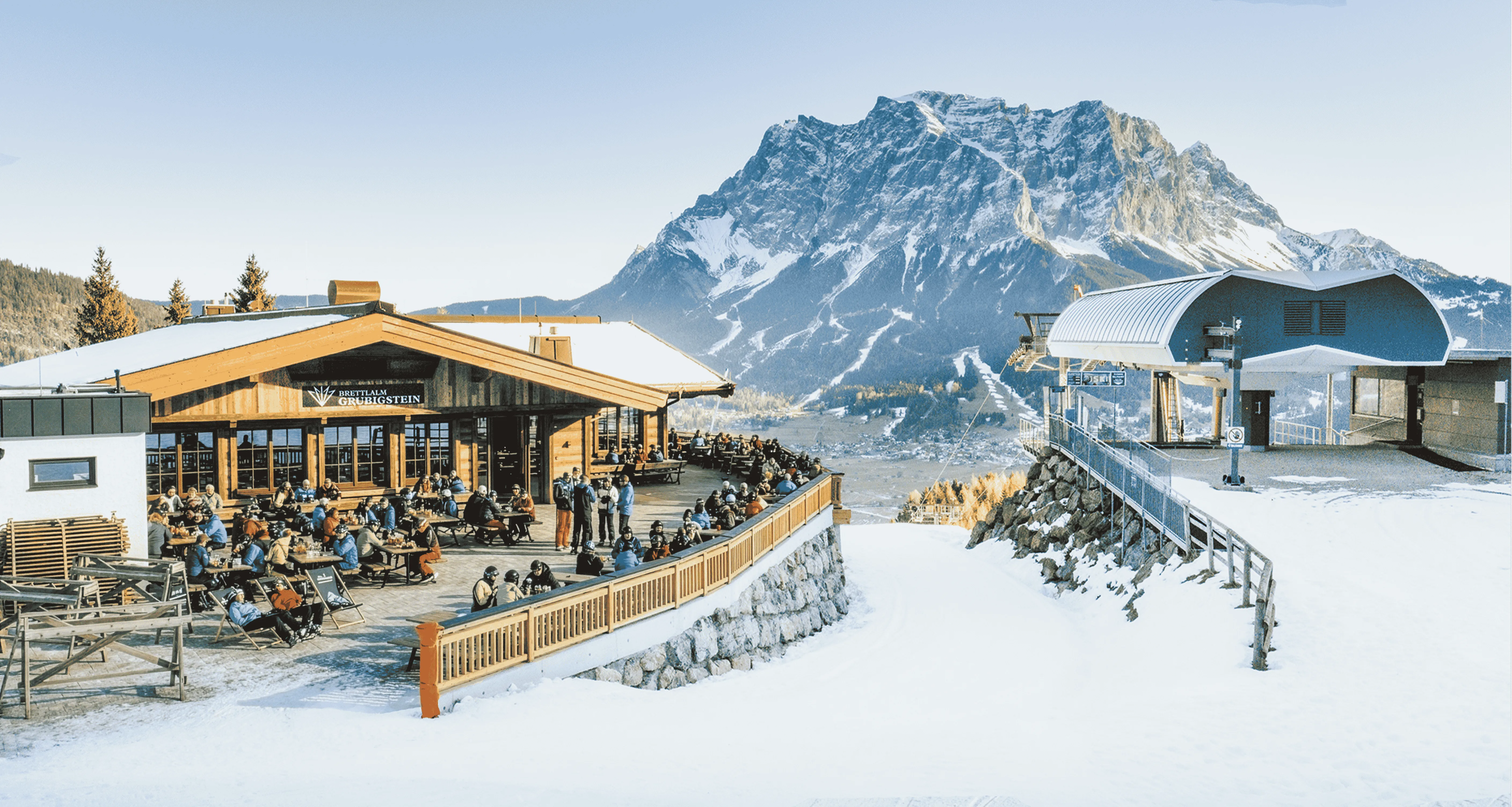 Genießen Sie regionale alpine Spezialitäten, wärmende Getränke und entspannte Genussmomente direkt an der Mittelstation der Grubigsteinbahnen. Umgeben von verschneiter Bergkulisse und beeindruckendem Panorama ist die Brettlalm der ideale Ort für eine wohlverdiente Pause zwischen den Abfahrten.